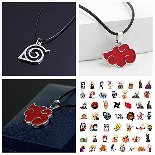 XHBTS - Collana con ciondolo a forma di nuvola rossa e ciondolo a forma di foglia con logo e 20 adesivi, in pelle, per uomo e donna