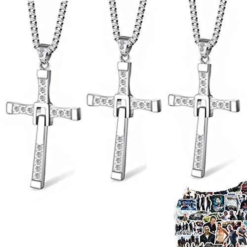 XHBTS 10 pezzi adesivi e 3 pezzi sostituiscono Fast and Furious Dominic Toretto's Cross collana pendente Vin Diesel titanio acciaio collana gioielli uomo