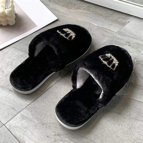 XHBYG Pantofole da Casa da Donna Scarpe Calde in Pelliccia Sintetica, Pantofola da Casa in Peluche Marshmallow da Donna con Diapositive in Memory Foam 6 Nere