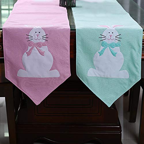 XHONG Runner da tavola pasquale con coniglietto, 32 x 182 cm, in cotone e lino, runner da tavola lungo per feste, casa, decorazioni per il giorno di Pasqua, rosa