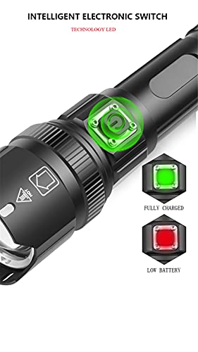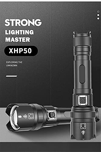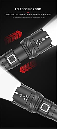 XHP50 Torcia LED Ricaricabili, Torcia LED alta potenza Torcia elettrica Super Luminoso 6000LM, 3 modalità Zoomabili Impermeabili Flashlight con 18650 Batterie per Campeggio Pesca Corre All'aperto