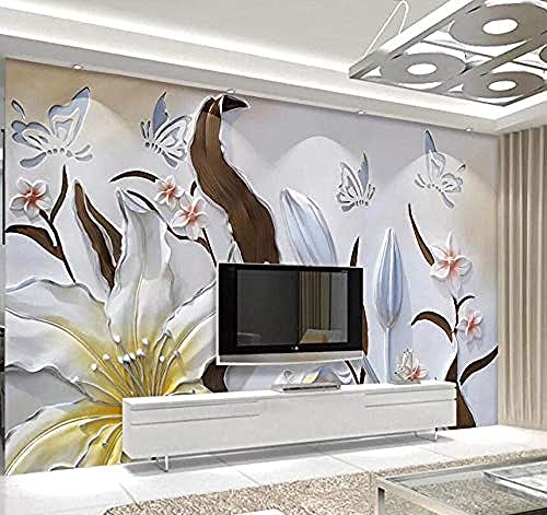 XHXI Carta da parati 3D di grandi murales per la casa di moda in rilievo con fiore di giglio e farfalla d'amore 3D Carta da parati fotomurali poster murale Soggiorno camera letto-150cm×105cm