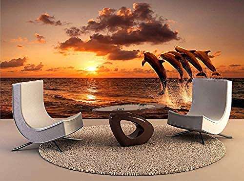 XHXI Murale da parete Bellissimo tramonto con i delfini Stampa da parete Murale Adesivo da parete Ar Carta da parati fotomurali poster murale Soggiorno camera letto minimalista tv sfondo-250cm×170cm
