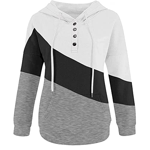 XHxttL Felpe con Cappuccio da Donna Pullover alla Moda Felpe Casual da Donna a Maniche Lunghe Color Block Pocket Top Camicie Capispalla