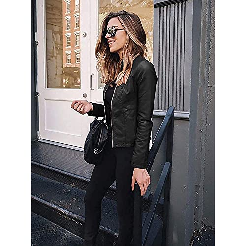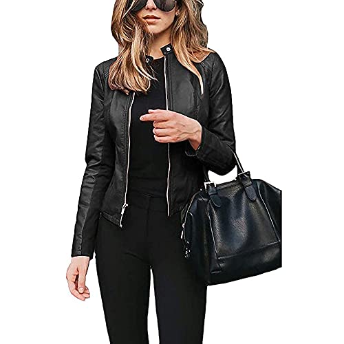 XHxttL Women's Faux Leather Jacket Giacca da Motociclista con Cerniera Lampo Manica Lunga con Apertura Frontale Top Cappotto Giacca in Pelle Tinta Unita da Donna
