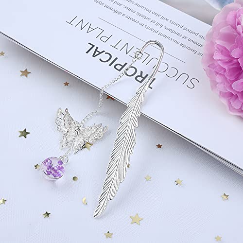 Xiangmall Segnalibro in Piuma di Metallo Segnalibri Creativi Piuma Segnalibri Vintage Classici con Farfalla 3D e Ciondolo Fiore Vetro Regalo per Lettori Amici Donne Ragazze Compagni di Classe