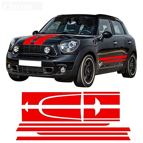 XIANGSHAN Adesivo Decalcomania Decal Sticker Banda per Mini Countryman R60 John Cooper Works JCW Laterale Che corre Gonna Stripes Cofano Posteriore Decal Accessori (Color Name: Black)