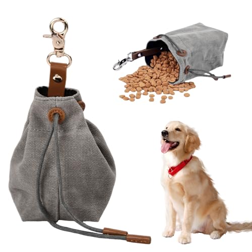 Xianynow Borsa per Cibo per Cani Portatile da Esterno Piccola Borsa per Cani con Gancio in Metallo per l'Addestramento degli Animali All'Aperto, i Viaggi, Le Passeggiate (Grigio)
