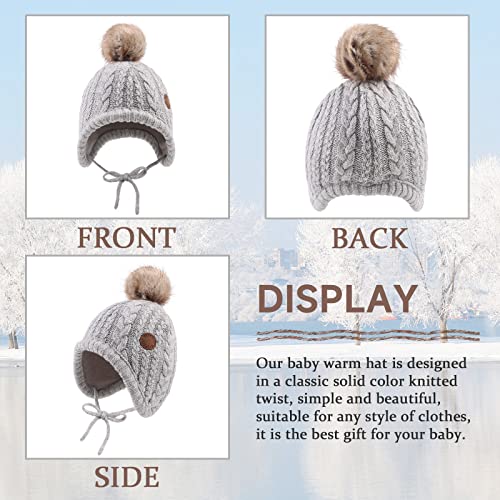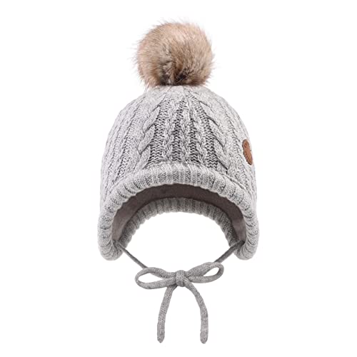 XIAOHAWANG Cappello Invernale per Neonati con Fodera in Velluto per Bambini Beanie per Bambini Earflap Caldi Cappelli per Bambini per Ragazze con Pompon (Grigio, 6-18 Mesi)