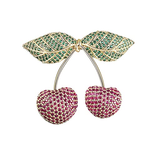 XIAOJIA Splendide Spille di Ciliegie Verdi Rosse per Le Donne Ciliegie di Frutta Spilla con Strass Spilla di Gioielli di Lusso Broche-Oro-Colore