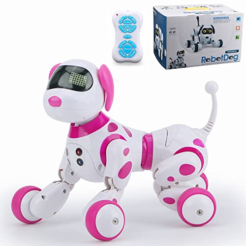 XIAOKEKE Cane Robot Giocattolo per Bambini Buddy Robot Interattivo, Canta, Danze E Telecomandato, Occhi con LED, Batteria Ricaricabile USB Robot Telecomandato Cani Giocattoli Bambino,Rosa