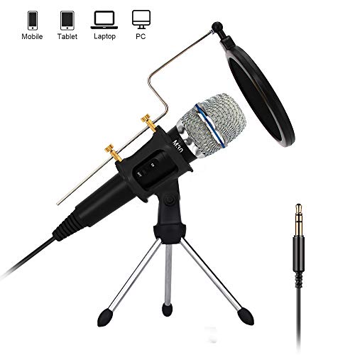 COMPATIBILITA ': Microfono a condensatore XIAOKOA da 3,5 mm Aux Jack Consente di utilizzare il microfono con computer portatile o desktop / computer Windows o Mac. Il cavo da 1,5 metri consente di avere una lunghezza sufficiente per collegare il jack computer.3.5mm, non necessita di alimentazione esterna, installazione e prestazioni senza driver e plug-and-play.