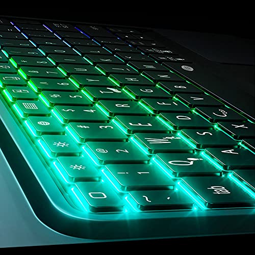 Lo strato esterno pieghevole in pelle PU di alta qualità, lo strato interno è in TPU, protegge il tablet da danni da cadute accidentali, graffi e urti. Può essere piegato come un libro, facile da trasportare. La tastiera ha 7 colori di retroilluminazione, che possono essere regolati secondo necessità, puoi essere facilmente utilizzata al buio o in piena luce. E può essere spento quando la retroilluminazione non è necessaria.