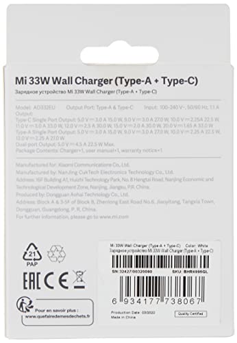 Xiaomi BHR4996GL, Mi 33W Wall Charger (Type-A+ Type-C) EU 32427