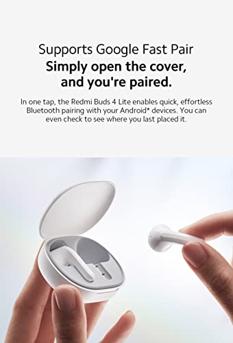 Xiaomi Redmi Buds 4 Lite, Auricolari Bluetooth 5.3, Cancellazione Rumori AI, Carica Wireless, Fino a 20 Ore di Batteria, Collegamento Google Veloce, Driver Dinamico 12mm, Resistenti all'Acqua IP54
