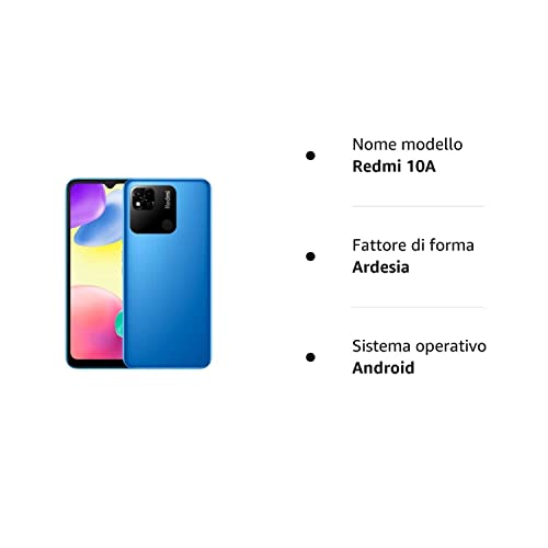 Xiaomi Redmi 10A Smartphone, display a goccia da 6,53", batteria da 5000 mAh, fotocamera da 13 MP, 3+64 GB, azzurro