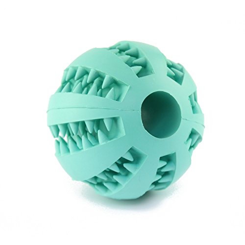 XiaoRui Pet palla da masticare in gomma naturale per cani, giocattolo interattivo, palla per la pulizia sicura e atossica, 7 cm (blu)