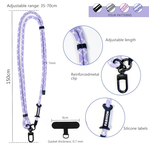Xiaowanwan Cordino per Cellulare,Cordino Telefono Tracolla,Cordino Cellulare Collo Regolabile per Chiavi appese ECC,Applicabile a Tutti i Smartphone (Viola)