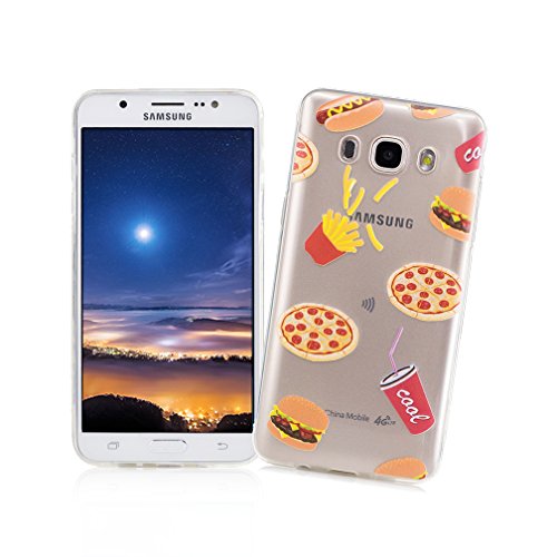 XiaoXiMi Custodia Samsung Galaxy J7 2016 SM-J710F Cover in Silicone Trasparente Soft Clear TPU Case Bumper Custodia Protettiva Cover Morbida Flessibile Custodia Liscio Leggero Cover Ultra Sottile Cassa Antigraffio con Disegno Semplice - Carino Hamburger Pizza