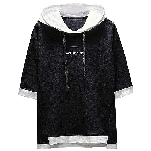 XIAOYAO T-Shirt Uomo, t-Shirt con Cappuccio (Nero, 2XL (Peso 65-70 kg - Altezza 175-180 cm))