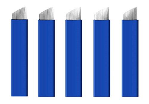 Xiaoyu 50PCS aghi per microblading, aghi per tatuaggio, penne microblading aghi per tatuaggio sopracciglia, blu, 14 pin