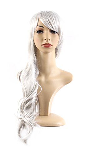 Xiaoyu 22 "80 centimetri obliqui bang lungo capelli ricci cosplay costume donne partito parrucche - argento
