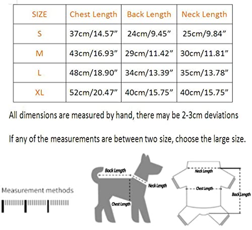L: lunghezza torace: 48 cm, lunghezza schiena: 34 cm, lunghezza collo: 35 cm, adatto per cani da 5,5 a 6,5 kg. Per una migliore vestibilità, si prega di assicurarsi di misurare attentamente il vostro cane prima di selezionare una taglia.
