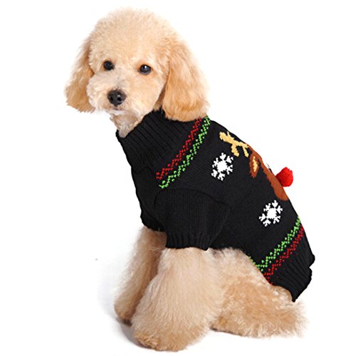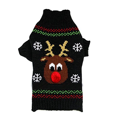 Xiaoyu Vestiti per Animali da Compagnia di Maglia del Cane per Cani Natale di Renna, Nero, XXL