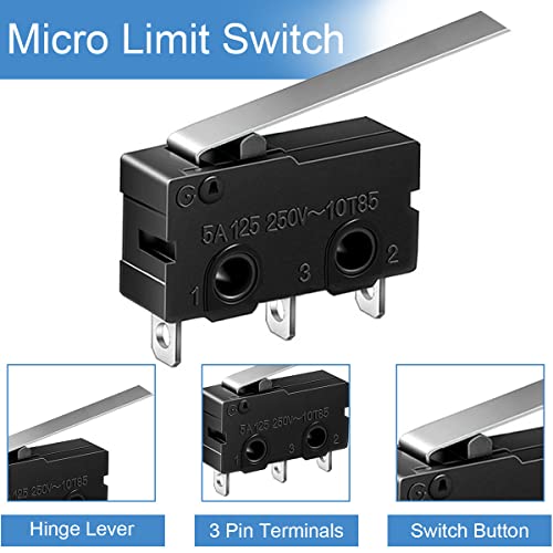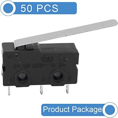 Xiatiaosann Micro Finecorsa Momentaneo Cerniera Braccio Leva 3Pin Mini Interruttore SPDT 1NO 1NC AC 5A 125 250V Terminali Interruttore di Azione Chiudi/Apri, 50 PZ