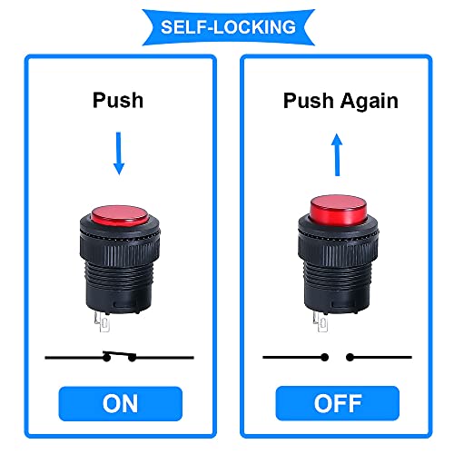 ✅ 【CONTENUTO DELLA CONFEZIONE】 Interruttore a pulsante autobloccante da 10 x 16 mm (ogni colore per 2 pezzi), 10 terminali a crimpare rossi con filo, 10 terminali a crimpare neri con filo