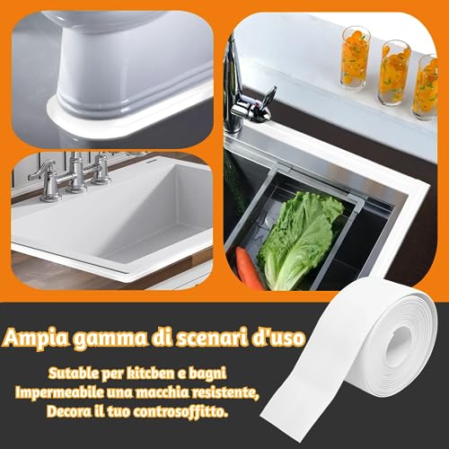 Ampia gamma di applicazioni: La striscia di caulk autoadesiva professionale porta un aspetto pulito ai piani di lavoro della cucina, ai bacini, ai lavandini, alle vasche da bagno, ai servizi igienici,
