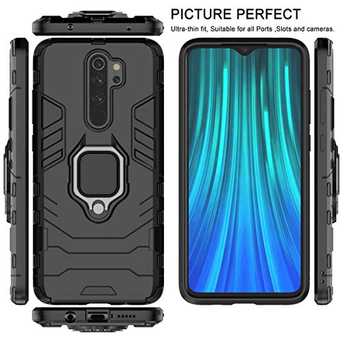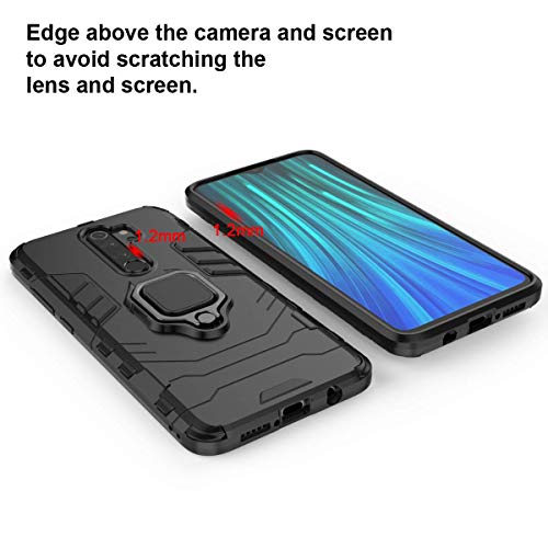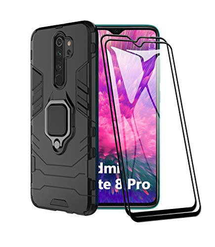 XIFAN Custodia per Xiaomi Redmi Note 8 PRO Nuovo [Robusto] Tattico Anello Metallico Cavalletto [Funziona con Il Supporto Magnetico per Auto] Case Paraurti, Nero + 2 Pack Pellicola Protettiva