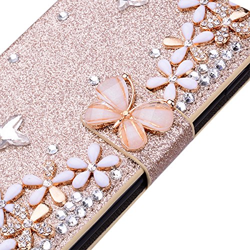 Xifanzi Samsung Galaxy J7 (2017) 3D Bling Bling Glitter Brillantini Brillante Oro Sparkle Case Caso Guscio Shell Wallet Premium PU e Glitter Brillanti 3D Fibbia diamantata Strass Cover