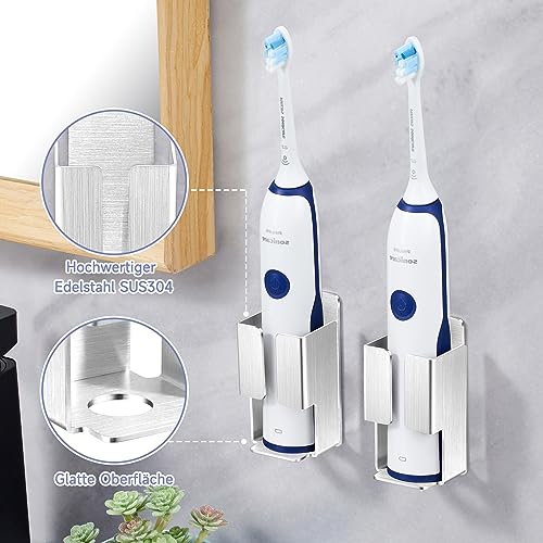 XILIMEN Portaspazzolino Elettrico, 2 Pezzi Porta Spazzolini Elettrici Adesivo, in Acciaio Inossidabile 304 Porta Spazzolino Elettrico da Parete, Organizer Bagno per Dentifricio & Spazzolino Elettrico