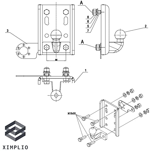 XIMPLIO Piastra adattatore universale per regolazione dell'altezza della sfera con ABE per gancio di traino, piastra di avvitamento AHK, 2 fori 90 mm/4 fori 83 x 56 mm (con viti 4 x M12)