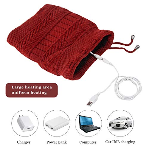 Xinapy Ghetta per Il Collo con Cappello Lavorato a Maglia Riscaldato 2 in 1 Berretto Invernale con Ghetta per Collo Riscaldata USB con Coulisse Sciarpa Ad Anello Circolare per Donna Uomo