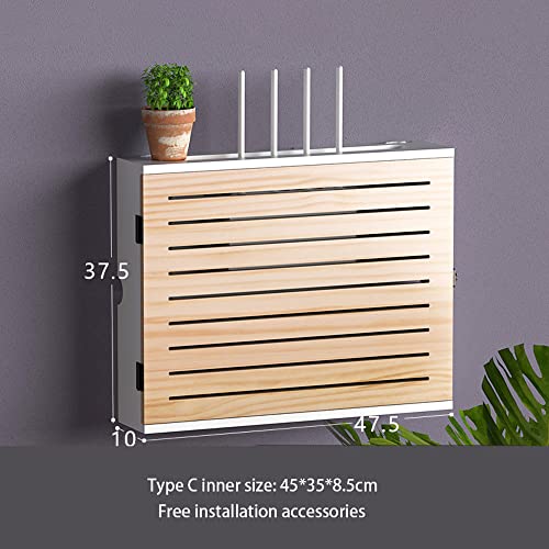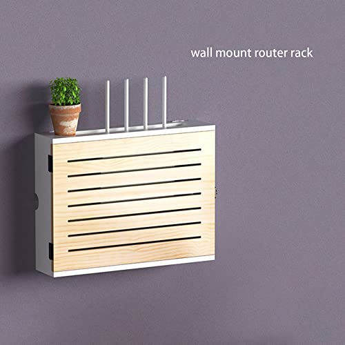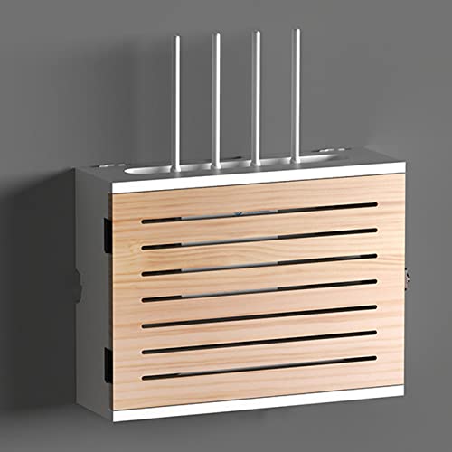 XINBALOVE Scatole portaoggetti per router Wi-Fi, mensola per router galleggiante a parete, scatola in legno per cavo di alimentazione, Armadio di schermatura multimediale-C|| white frame