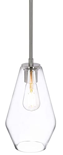 XiNBEi Lampada a sospensione Mini lampada a sospensione a 1 luce, moderna cucina regolabile in vetro Lampada a sospensione a sospensione Finitura nichel spazzolato XB-P228-BN
