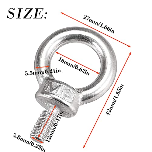【Imballaggio e Dimensioni】La confezione include 8 pcs bullone a occhiello, lunghezza totale 42 mm, lunghezza filettatura: 12 mm, diametro interno anello: 16 mm, diametro esterno anello: 27 mm, spessore: 5,5 mm.