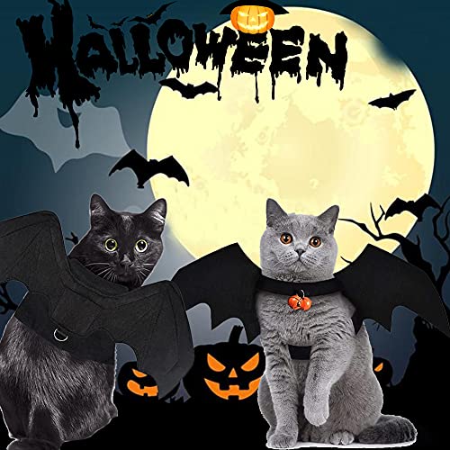 XINCHEN Costumi di Animali Domestici di Halloween con 2pcs Zucca Bells Bat Wings Cats Dogs Halloween Costume per Animale Ali di Pipistrello Costume da Pipistrello Cane Gatto