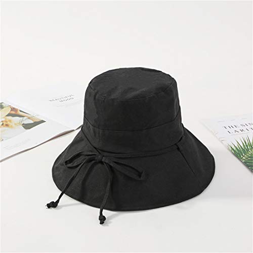 XINCHENYU Cappello da sole estivo pieghevole a tesa larga in cotone da donna A-Nero L