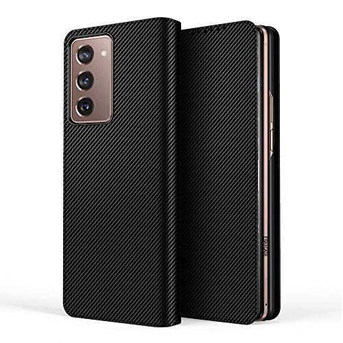 Xindemei per Samsung Galaxy Z Fold 2 5G Custodia a Portafoglio in Pelle di Lusso, Custodia a Vibrazione Magnetica Divisa Custodia Protettiva Antiurto Anti-Caduta (Fibra di Carbonio Nera)