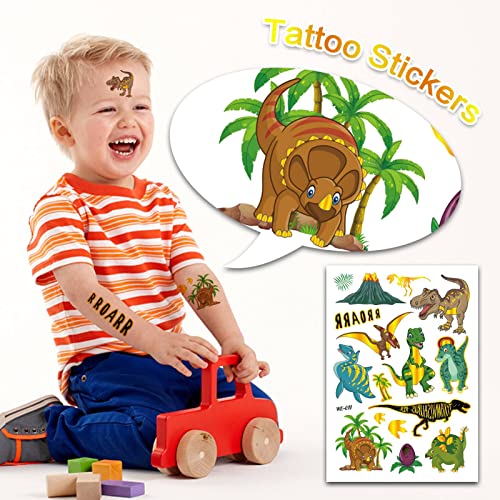XINDY Tatuaggi Glitterati per Ragazzi, Kit di Tatuaggi temporanei Impermeabili per Bambini, Dinosauri Finti Adesivi per Tatuaggi per Ragazzi, Tema Dinosauro, Feste di Compleanno, bomboniere, Regalo