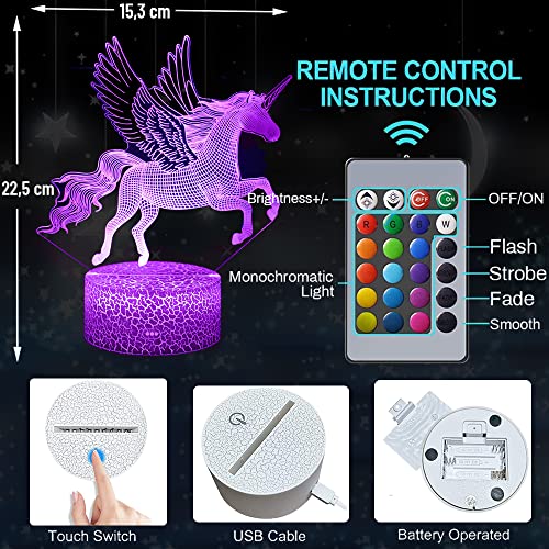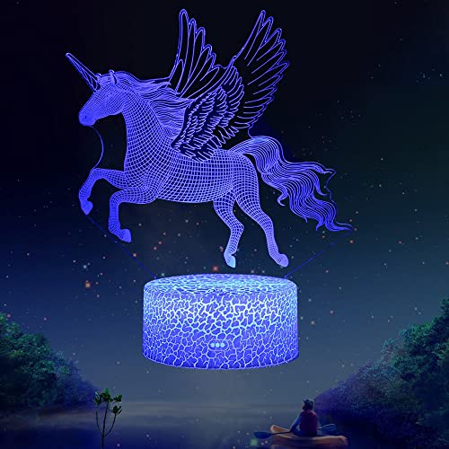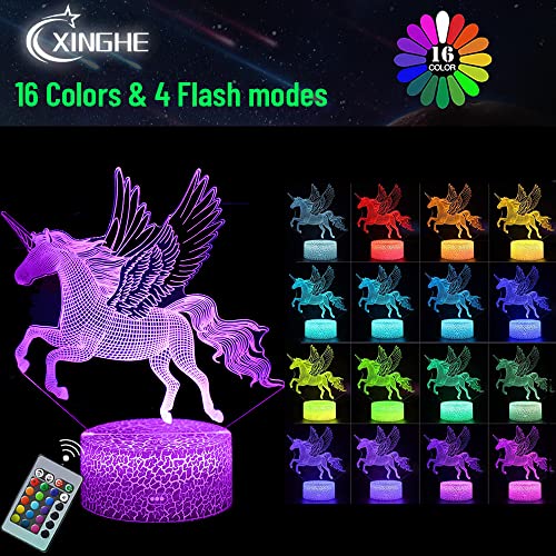 XINGHE Luce Notturna Unicorno 3D per Bambini, Lampada LED per Ragazza USB Luce Notturna Illusione, 16 colori che Cambiano con Telecomando per Bambini Adulti Regalo di Compleanno e Festa (Unicorno)