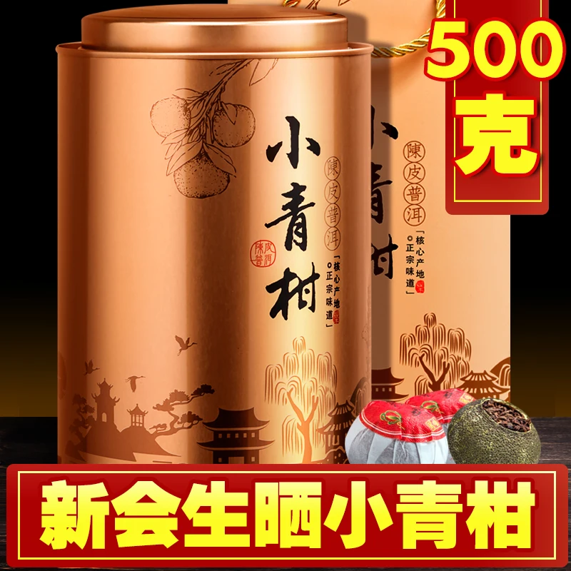 Xinhui Xiaoqing Orange 500G Mandarin-Flavored Pu'er Tea Gift Set Court Tangerine Peel Cooked Tea Pu'er Tea Iron Canned Bulk