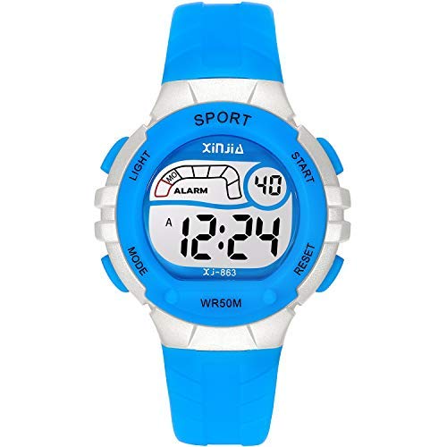 XINJIA Orologio Digitale Bambini per Ragazzi Ragazze,Orologi Bambini Sport Elettronico 50M Impermeabili,LED Multifunzione Sveglia Timer Studenti Orologio Bambino Polso (Blu 863)