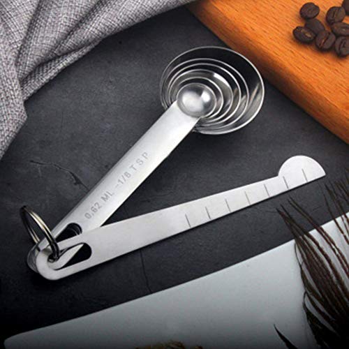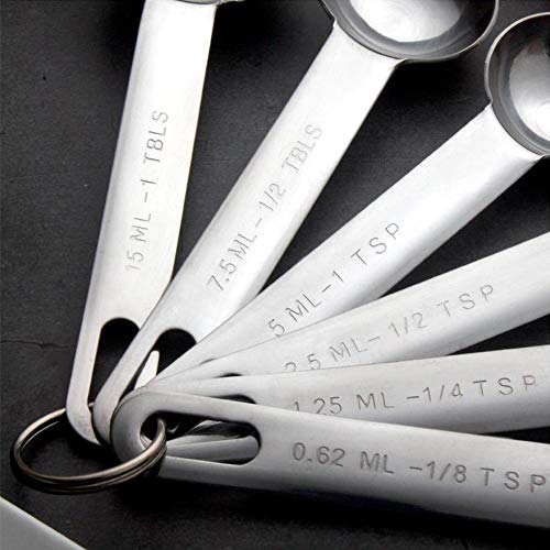 Xinlie Set of 7 Misurini in Acciaio Measuring Spoons Misurini Set di Cucchiai di Misurazione Set Cucchiai di Misurazione 7 Pezzi per Misurazione Ingredienti Asciutti o Liquidi per Infornare e Cucinare