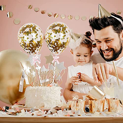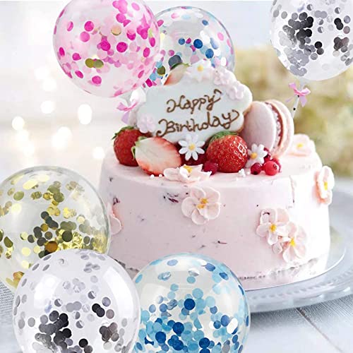 Xinlon 12 Pezzi Palloncino Cake Topper, Palloncini con Paillettes, Coriandoli Palloncino Topper, Decorazione Torta Buon Compleanno Topper, Decorazione Torta Palloncini per Feste Matrimoni (6 colori)