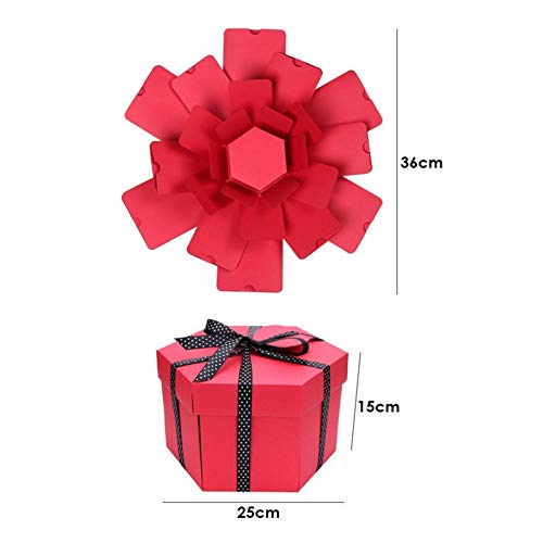 Xinmeng Creativo Hex Surprise Explosion Photo Box Explosion Box Esagonale Fai da Te Foto Album Scrapbooking Bomb Contenitore di Regalo for San Valentino (Color: Red)