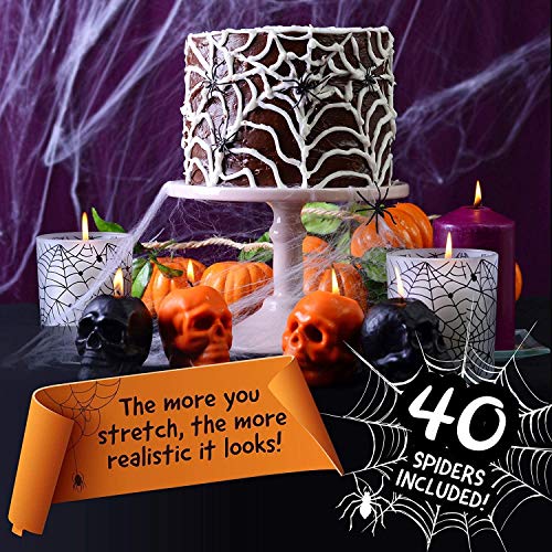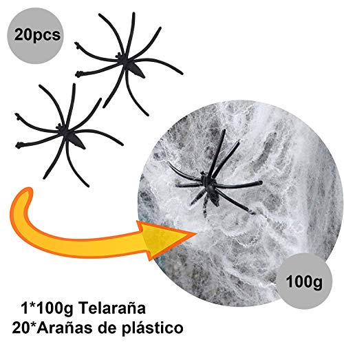 Xinmeng Ragnatela Bianca|Ragnatela Halloween|Decorazione Ragnatela|Feste Ragnatele|100g Ragnatela Elastica con 20 Ragni finte per Interni ed Esterni, Horror Decorazione del Partito.